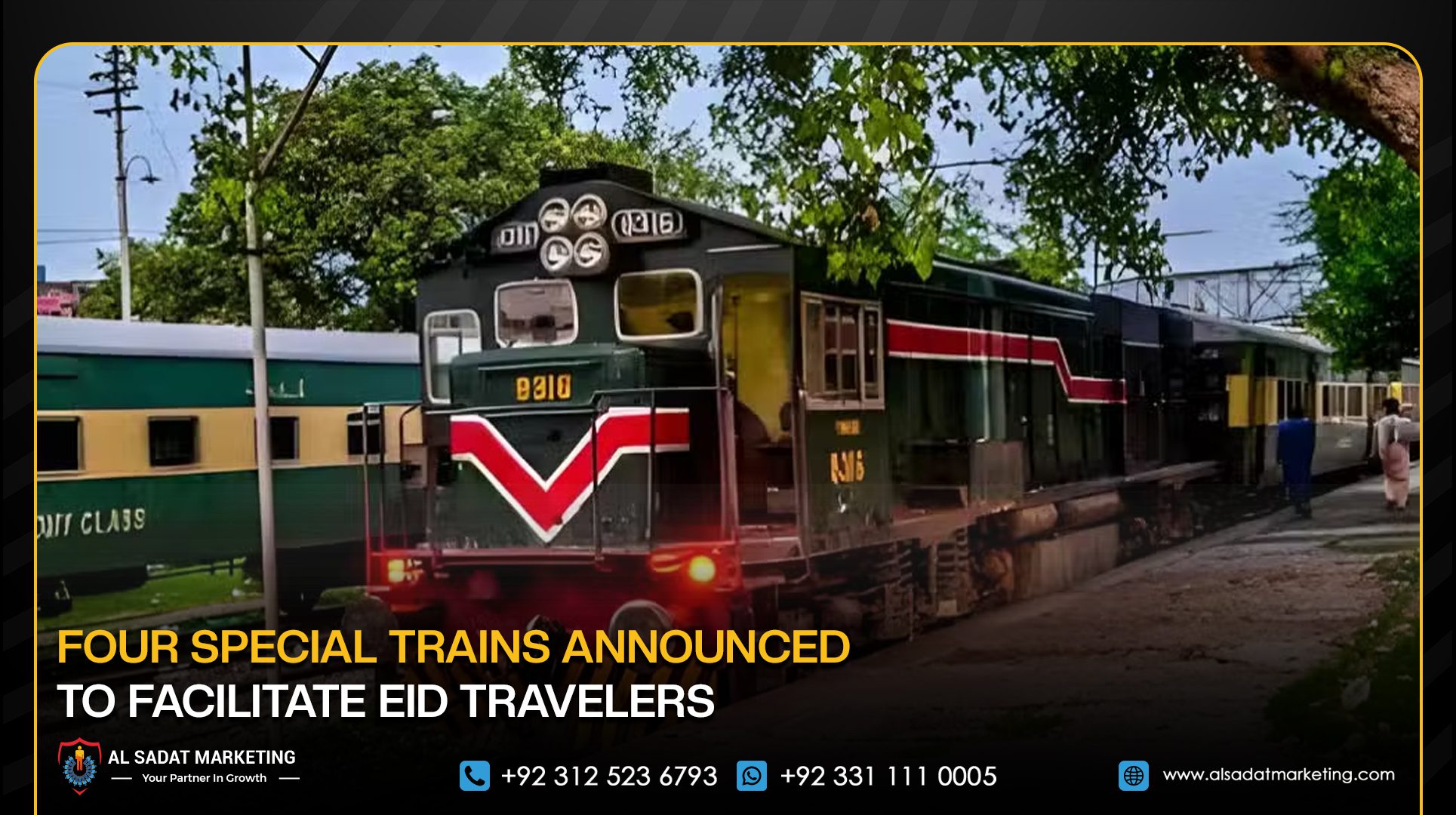 Pakistan Railways will operate four special trains ahead of Eid to accommodate the expected surge in passengers travelling across the country.