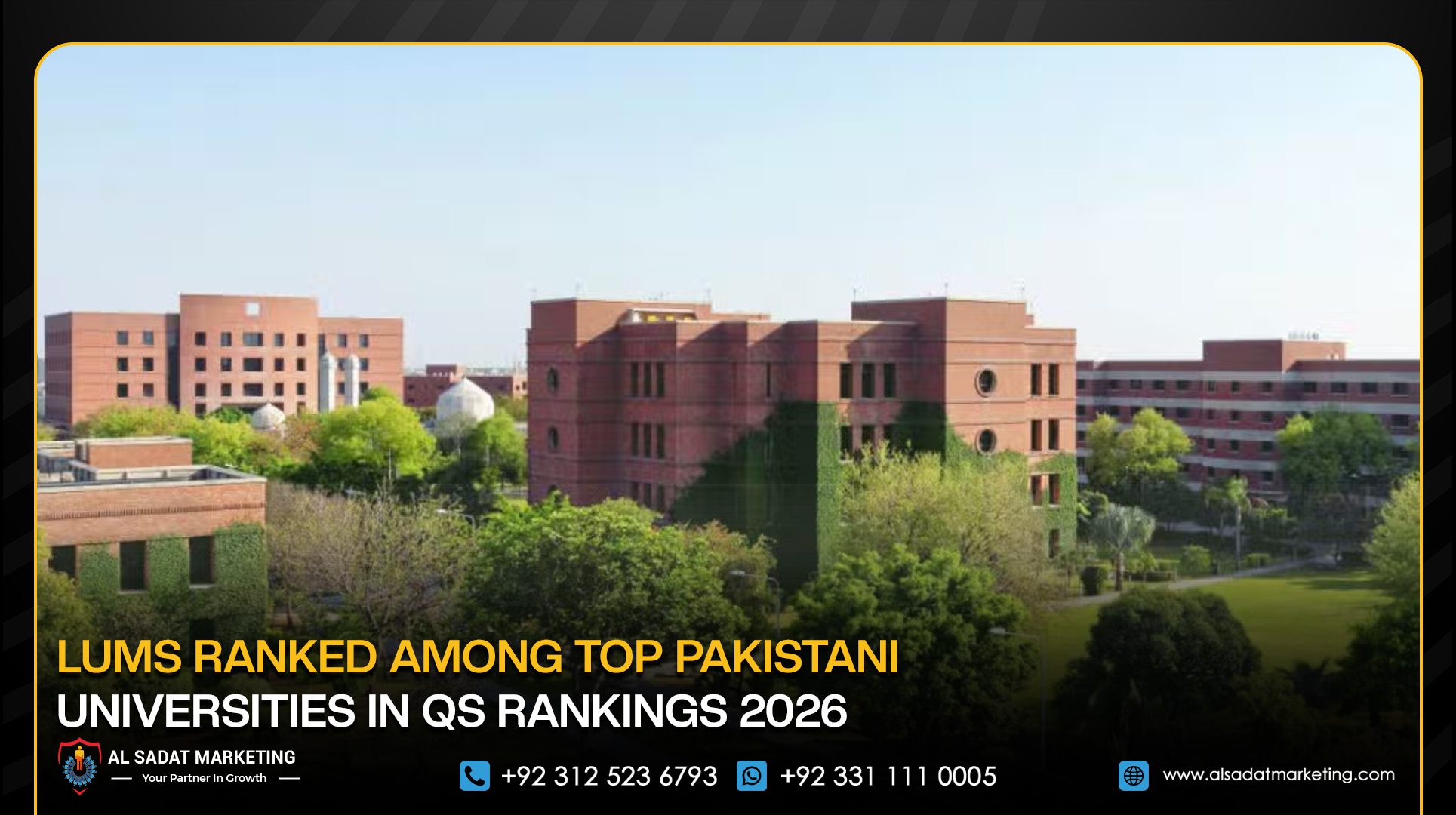 Lahore University of Management Sciences (LUMS) has been ranked as the top Pakistani university in several subject areas in the QS World University Rankings by Subject 2026.